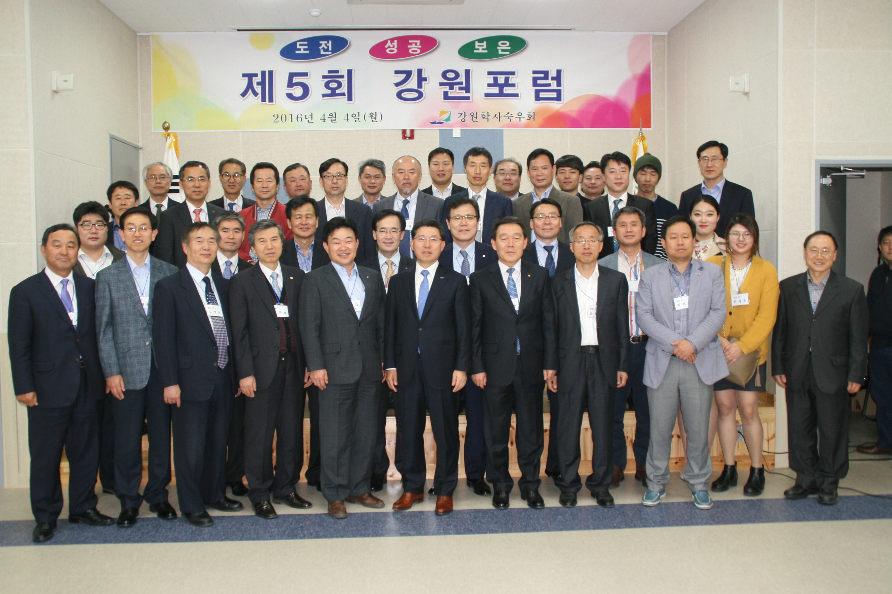 「제5회 강원포럼」이 강원학사 미래관에서 강원학사 숙우회 주관으로 2016. 4. 4(월), 20:00부터 개최하고, 이여서 강원학사숙우회의 법인화 준비를 위한 회원들의 의견을 듣는 순서로 진행되었다