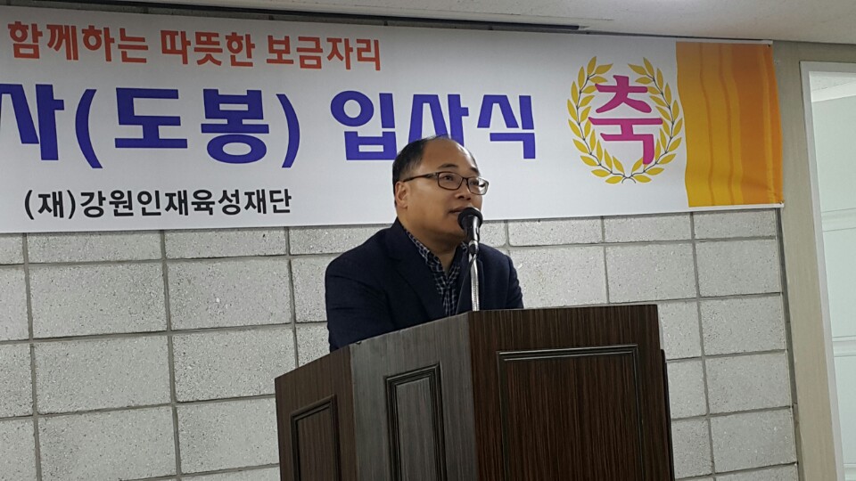 2018. 3. 1(목) 도봉학사 입사식에 신국선 숙우회 부회장님이 참석, 축사 및 장학금 수여를 해주셨습니다.