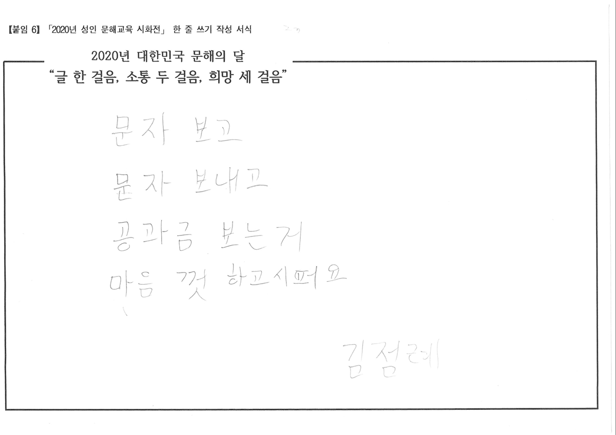 한글을 빨리 깨우쳐 문자를 보고 보내고를 마음대로 하고 싶은 마음 표현하였습니다.