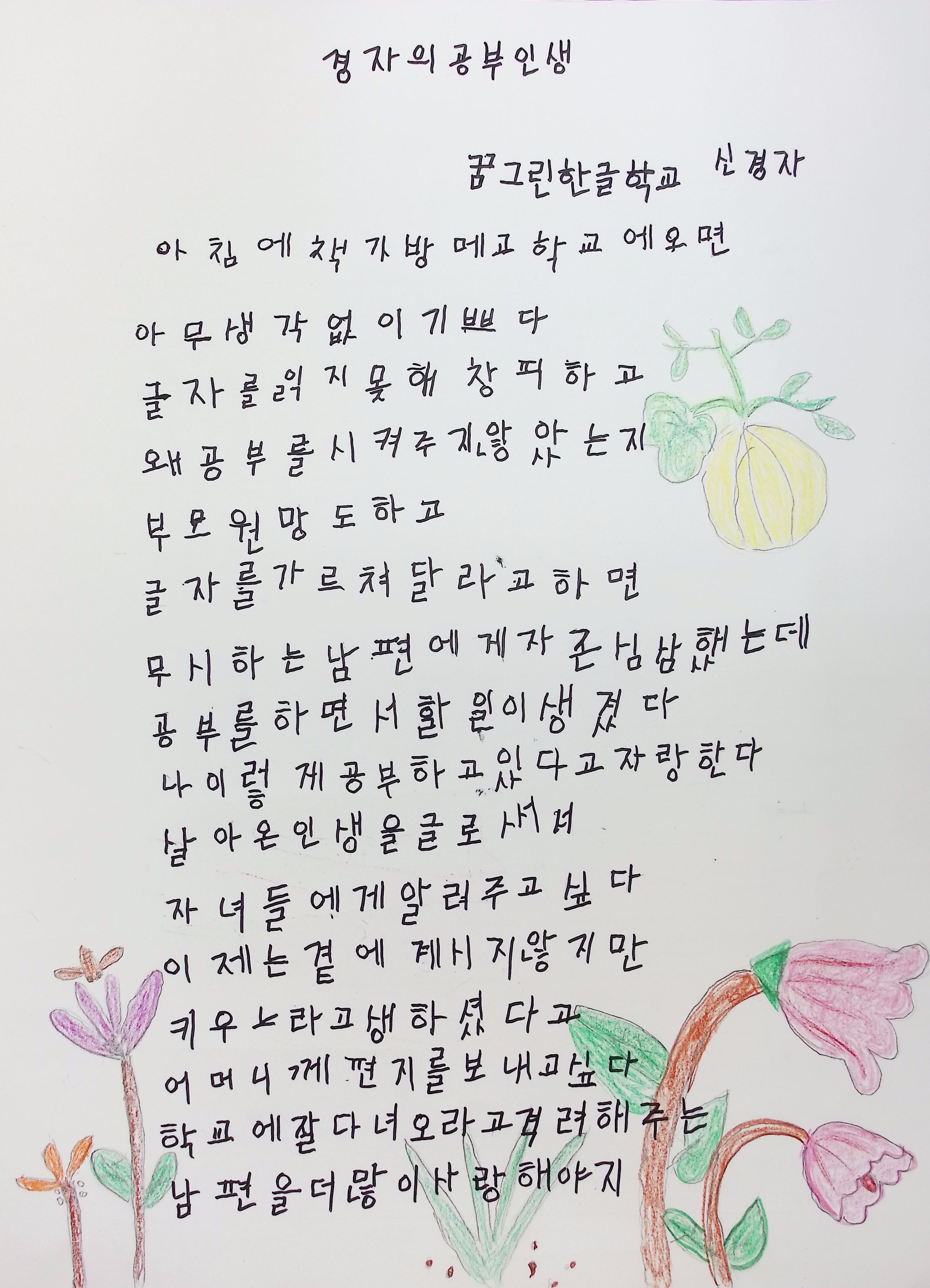글을 배우지 못해 불편했던 점들이 많았지만, 학교에 다니면서 느끼는
