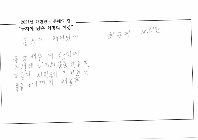 (전국 성인문해교육 시화전 출품작) 국가평생교육진흥원장상