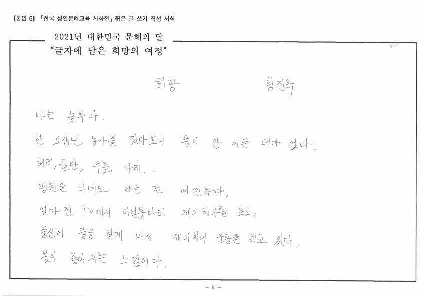 시작한 문해교육을 통해 글짓기까지 배우셔서 선생님께