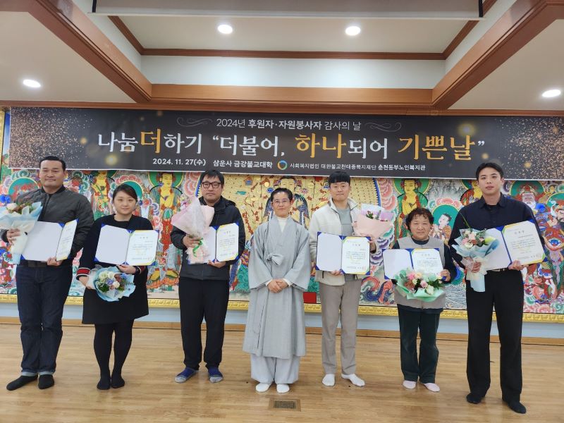 □ 강원인재원은 지난 11월 27일 춘천 삼운사 금강불교대학에서 열린 춘천동부노인복지관의 2024년 자원봉사자 감사의 날을 기념하여, 우수자원봉사 기관 표창장을 수상했다.