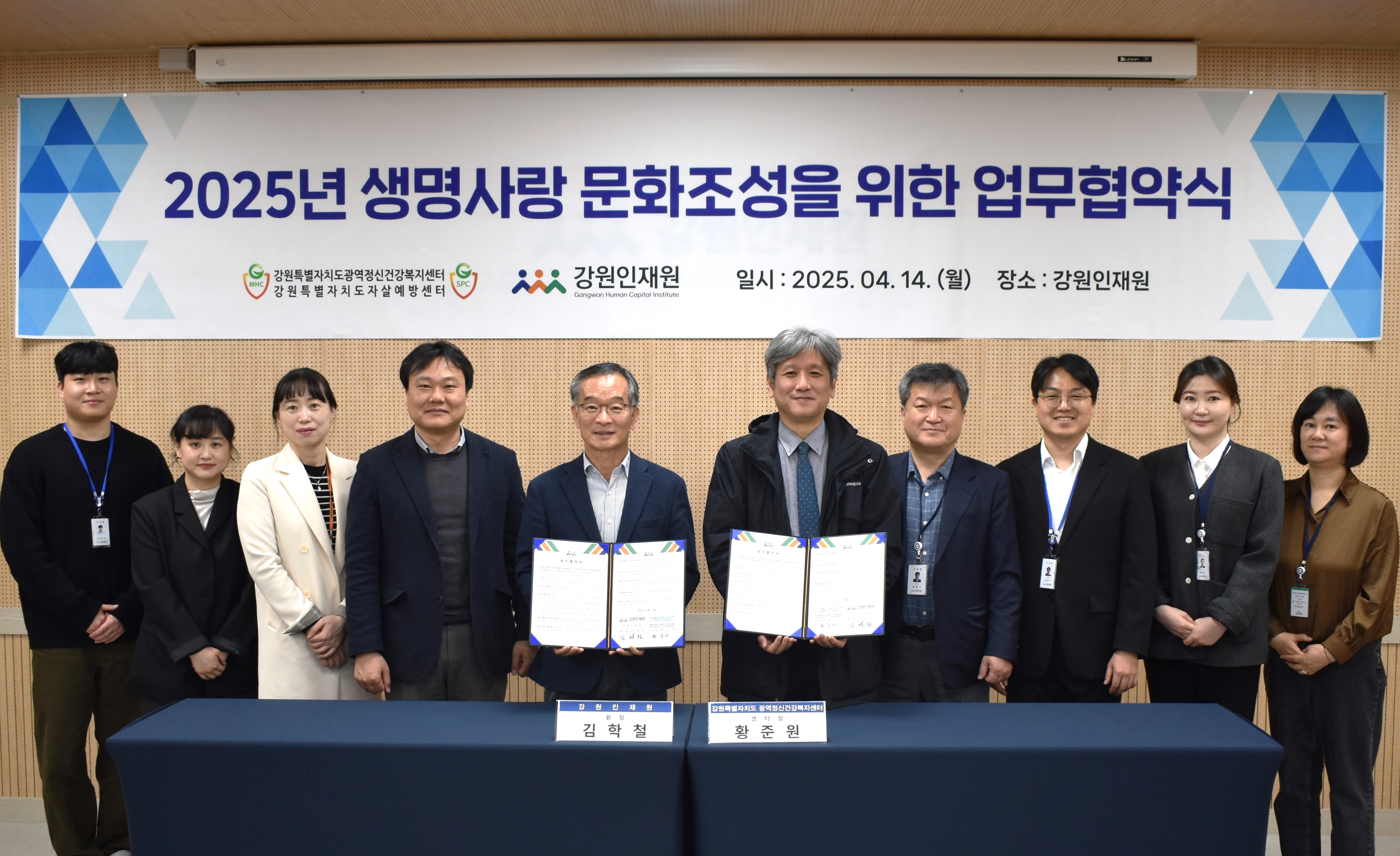 김학철 강원인재원 원장은 “이번 협약을 통해 도민들에게 생명사랑의 중요성을 알리고, 자살예방을 위한 실질적인 지원이 이루어질 수 있도록 적극 협력하겠다”고 밝혔다.