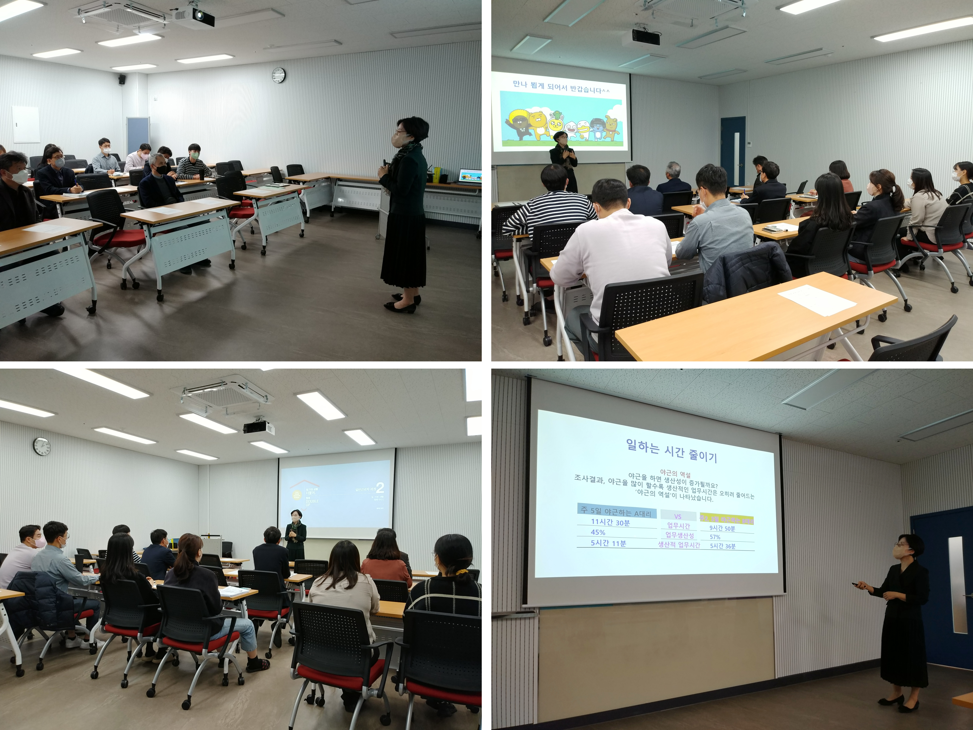 ▶ 가족친화제도를 안내하고 상생경영 전략 강화를 위해 임직원을 대상으로 직장 교육을 진행하였습니다.