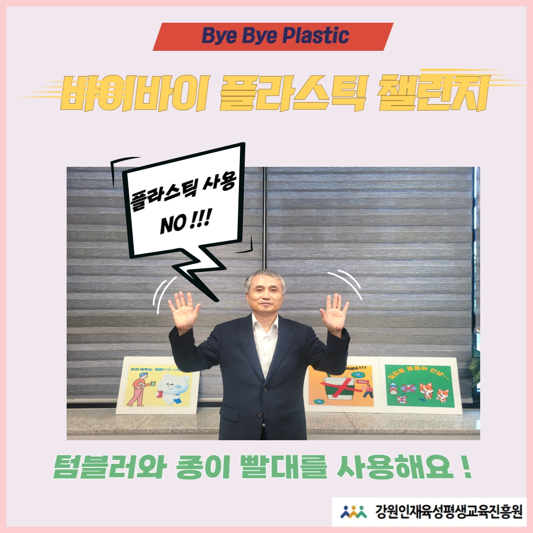 'Bye Bye Plastic'은 환경부에서 진행하는 불필요한 플라스틱을 줄이고, 착한 소비 실천을 확산시키고자 추진하는 릴레이 챌린지 입니다.