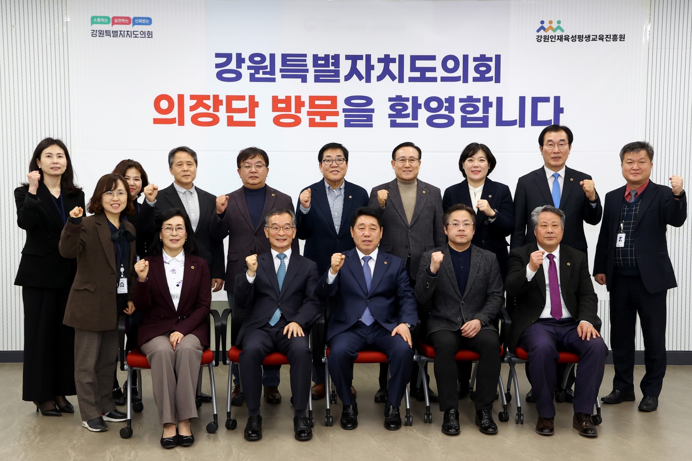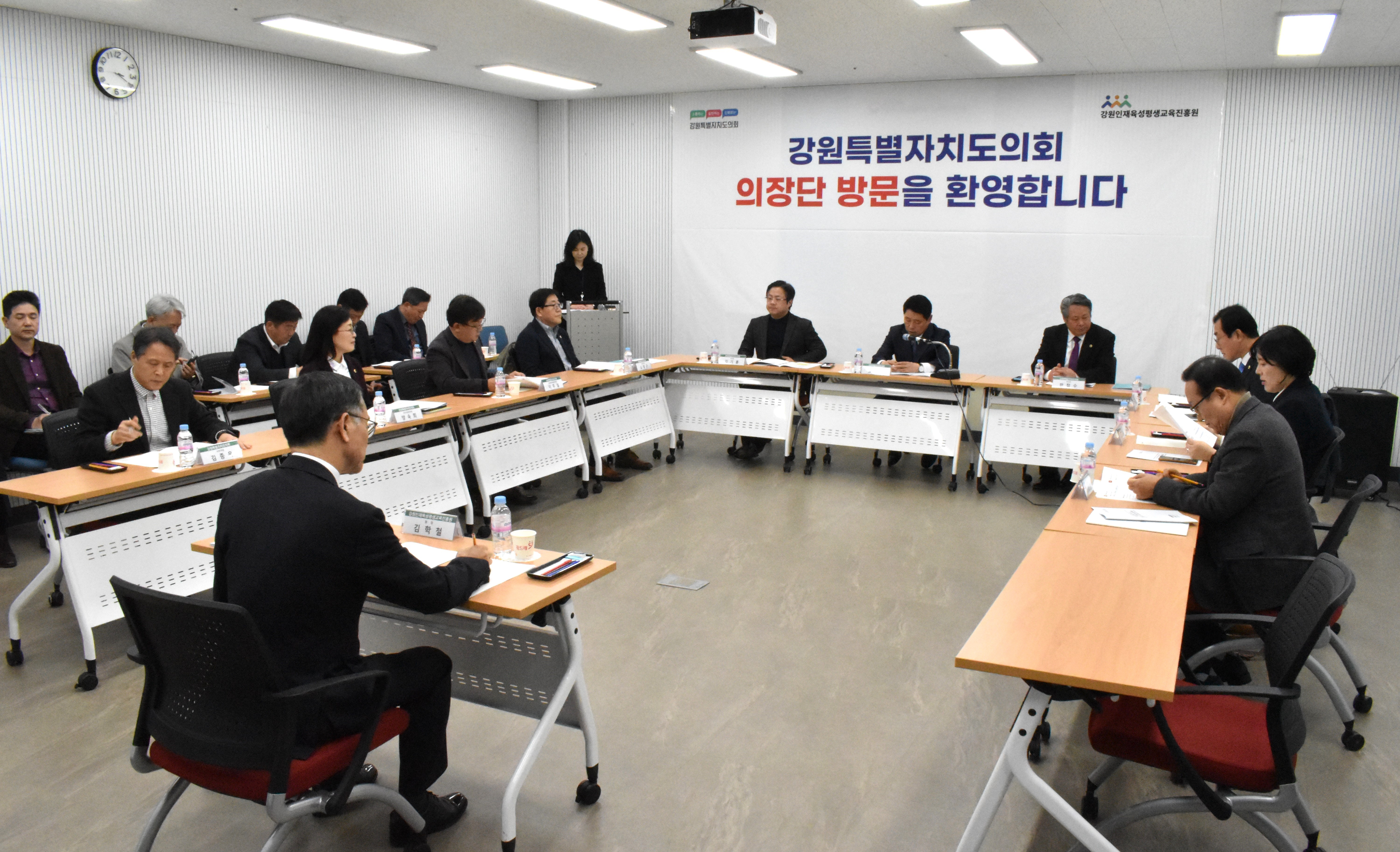 권혁열 의장과 김기홍, 한창수 부의장, 심영곤 운영위원장 등 총 9명의 의장단은 이날 ▲RISE센터 지정에 따른 인평원의 역할과 책무(정재웅, 김희철 의원) ▲강원학사 신축‧이전 추진(김기홍 의원) ▲강원특별자치도 인재 양성기관으로써의 중요성(권혁열 의원) 등에 대한 의견 개진 및 인평원장의 답변을 청취했다.