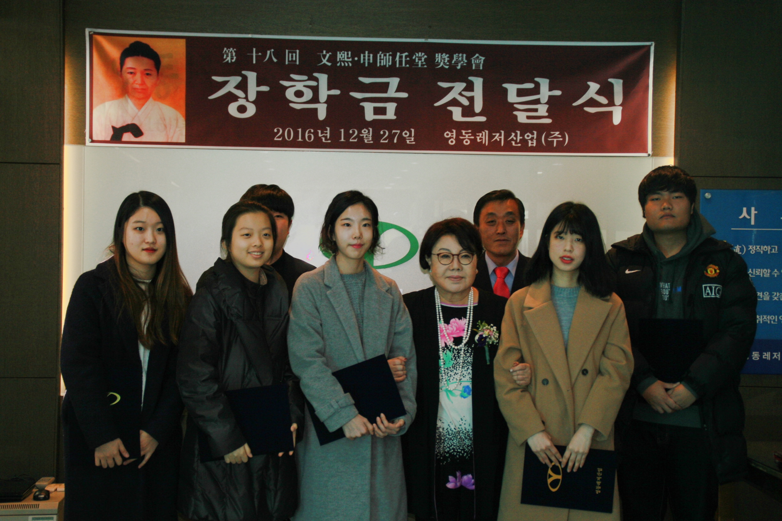 ▲ 제18회 문희·신사임당 장학금 수여식이 여주휴게소(상)에서 열렸습니다. 올해 강원학사 장학금 대상자는 권가영(중앙대 응용통계학 3), 한서영(한양대 정책학 2), 조현지(숙명여대 가족자원경영 2) 사생이 선정됐습니다.