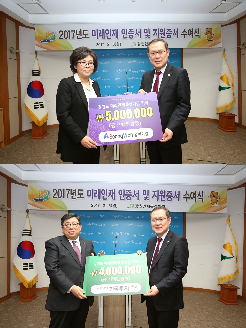 ▲ 성원기업과 한국투자증권에서 미래인재육성기금을 기탁해 주셨습니다.