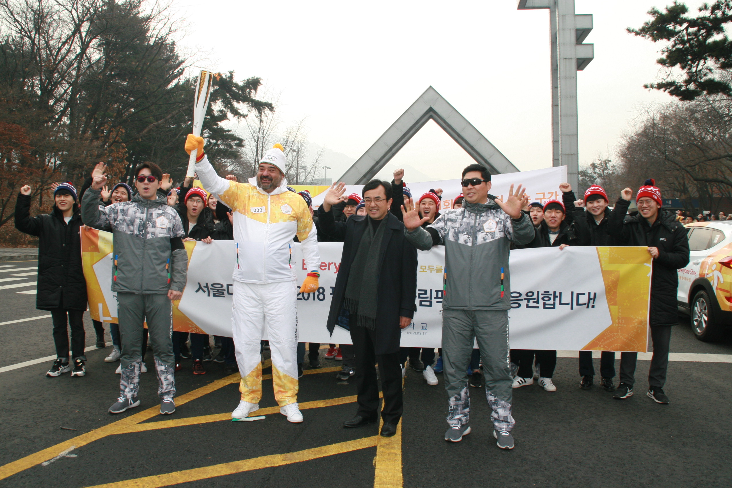 ▶ 1월 16일 오전 11시 서울대학교에서 강원학사생들의 참여속에 평창 동계올림픽 성화봉송이 있었습니다.