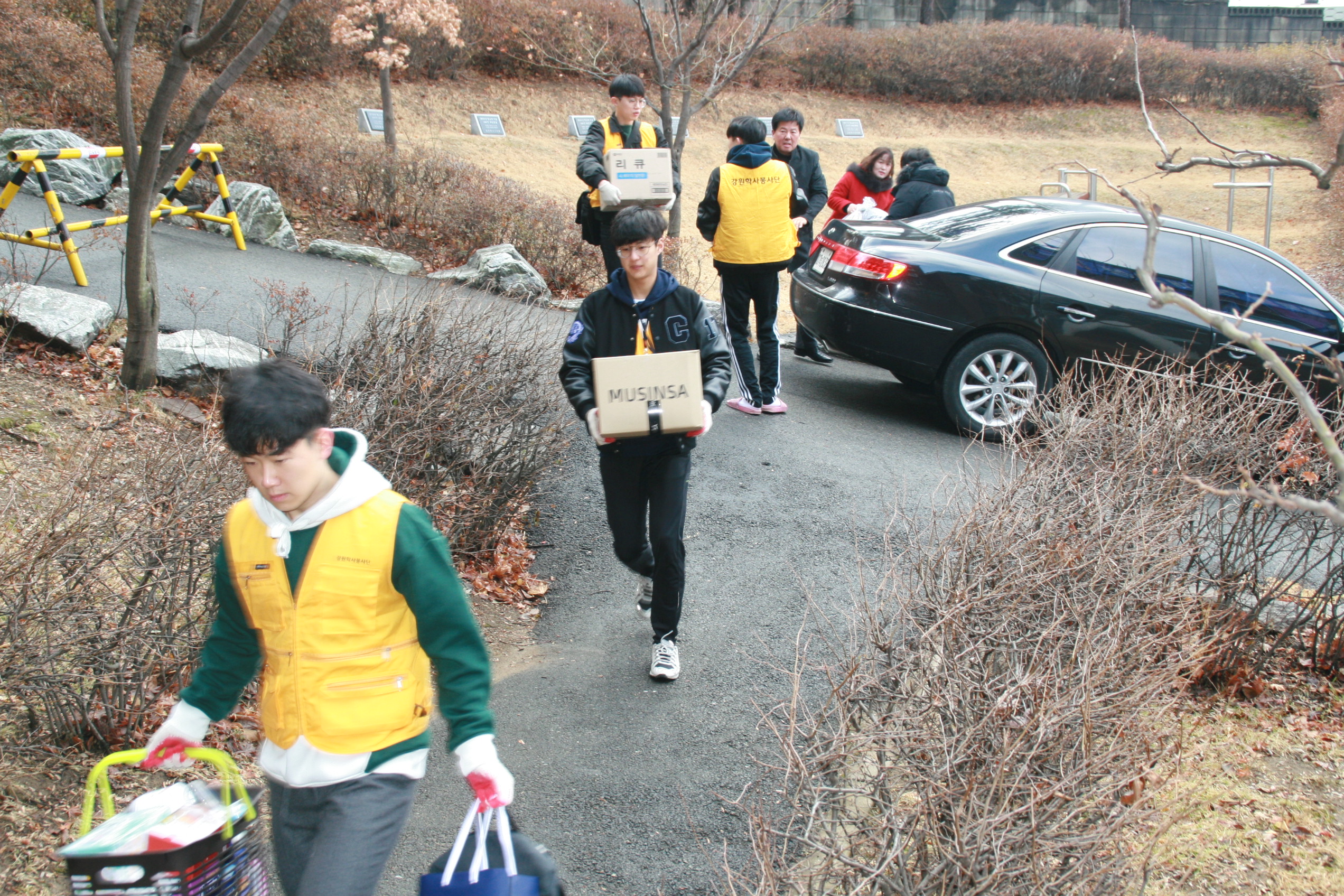 짐 나르기 도우미를 하고 있는 관악학사 자치회 친구들!