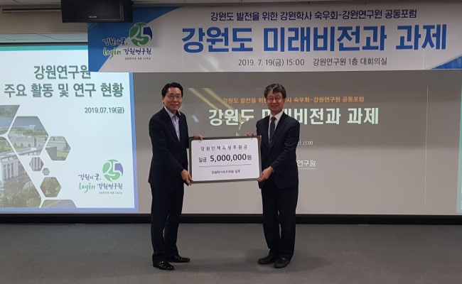 ▶7월 19일 강원연구원 대회의실에서 개최된 숙우회강원연구원 공동주최 "강원포럼"에서