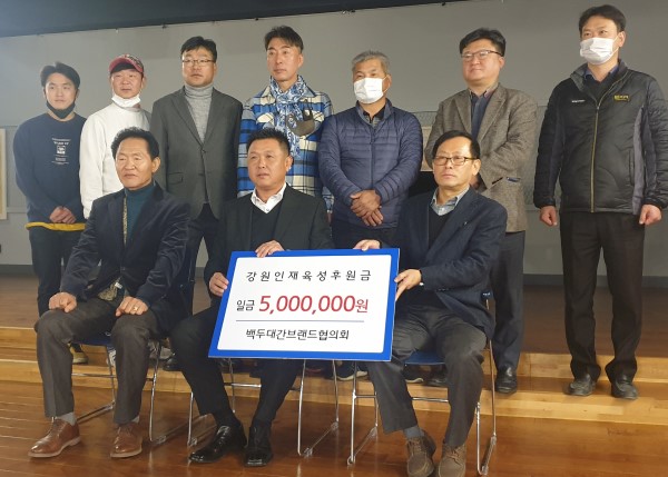 11월 14일 백두대간 브랜드협의회에서 강원인재육성사업의 발전을 위하여 후원금 500만원을 후원하였습니다.