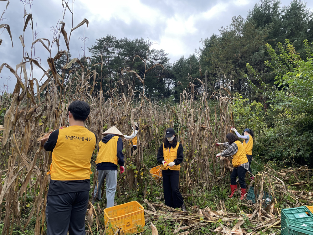 - 춘천시 사북면 옥수수농가를 방문하여 학생들과 임직원분들이 코로나19로 지친 농가에 작은 일손을 보태며, 구슬땀을 흘렸다.