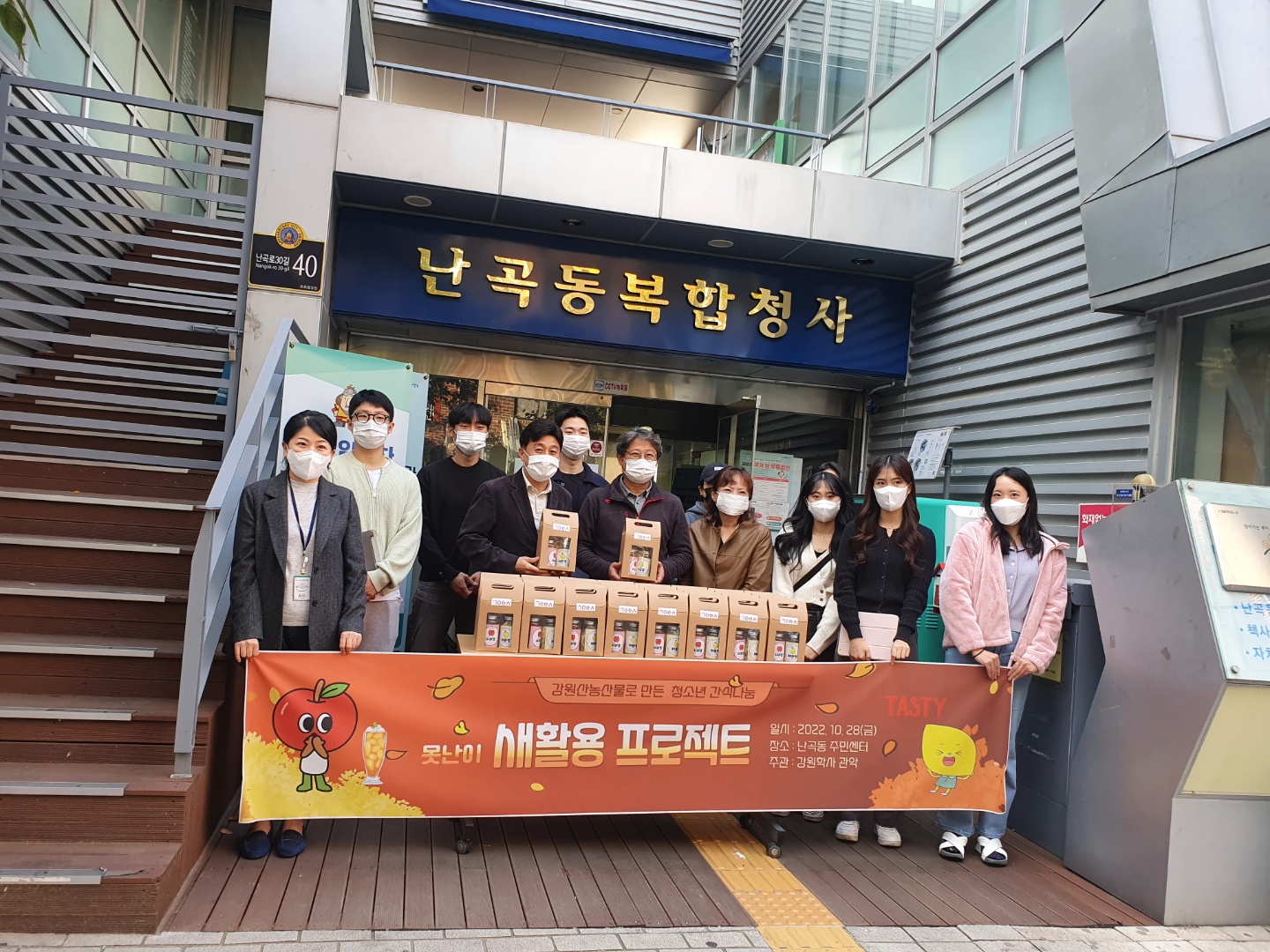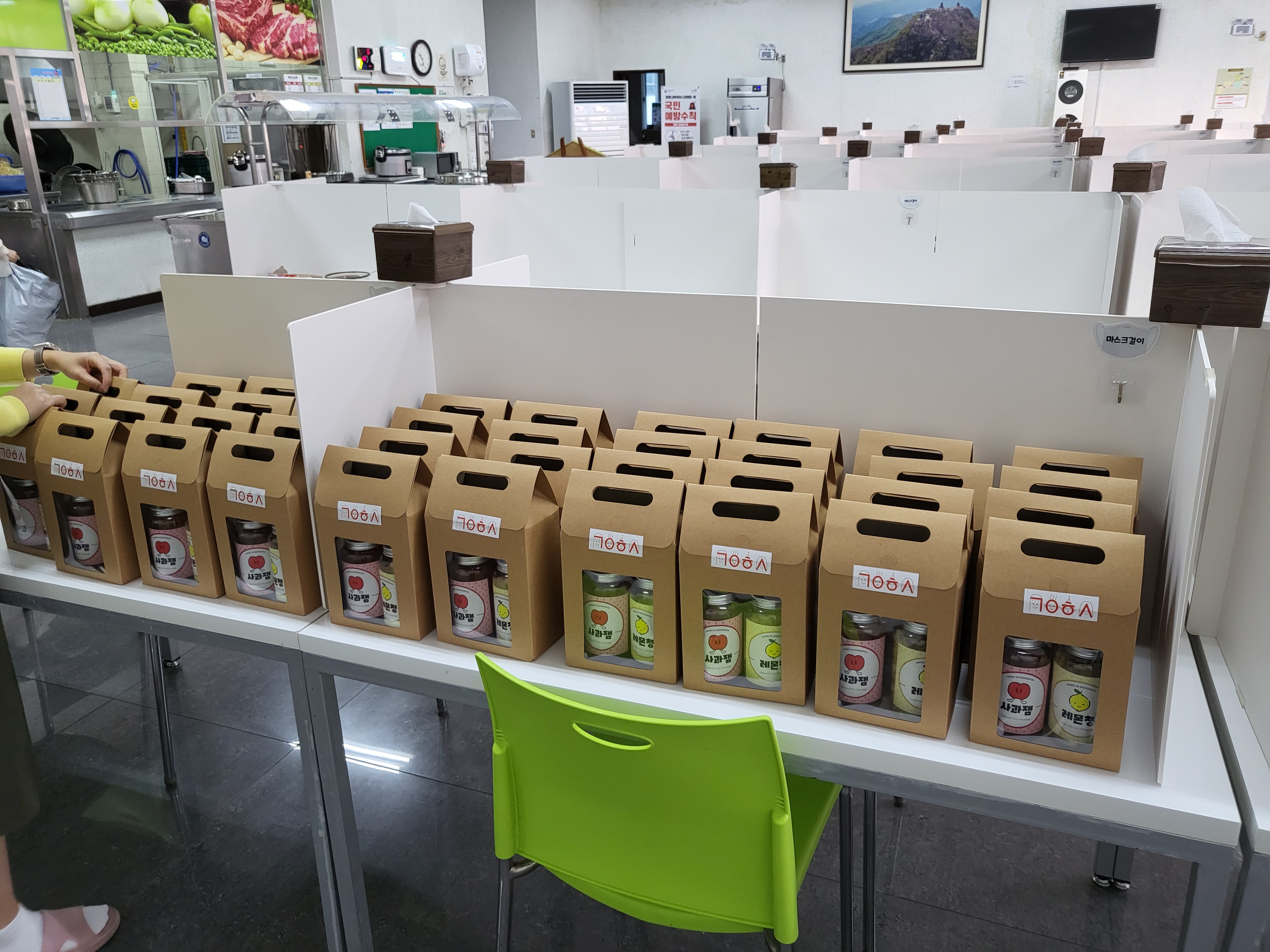 관악학사에서 강원산 못난이 농산물을 활용하여 만든 사과잼을 만들어 배부하는 전달식을 진행하였습니다.○ 일 시 : 2022. 10. 28(금) 오후 2시30분