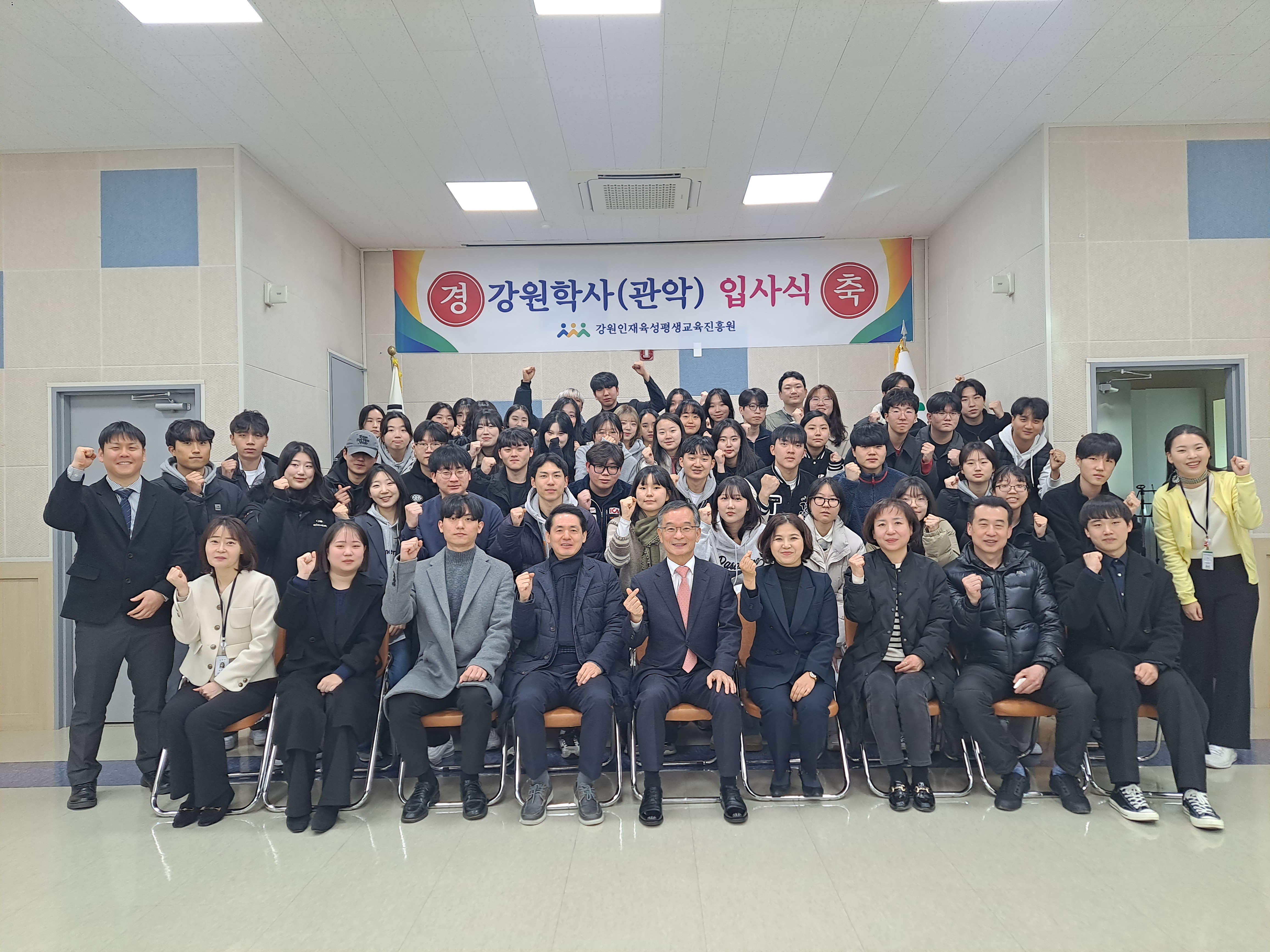강원학사(관악)은 3월 1일 오전 11시, 관악학사 미래관에서 2024년 1학기 입사식을 개최하였다이날 김학철 원장과 이원섭 강원학사 숙우회장을 비롯한 내빈들, 신입사생, 학부모 등 총 100여명이 참석하였으며, 숙우회에서 학사 후배들을 위해 4백만원을 기탁하였다.