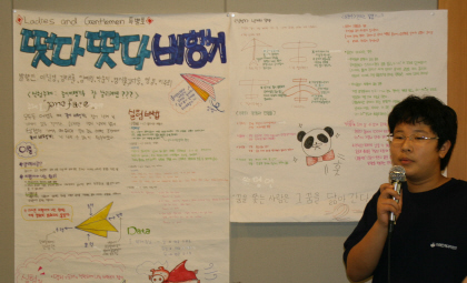 자기주도적 탐구 활동의 일환으로 각 조별로 자유롭게 주제를 정하고 탐구하여 발표하는 시간. 1조에서는 "떳다 떳다 비행기"라는 주제로 양력과 비행기의 무게중심, 날개 변화를 통해 비행기를 멀리 또는 정확하게 날리는 방법을 연구하여 발표했다.