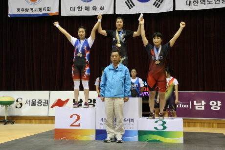 제88회 전국체전(광주)에서 3관왕을 차지한 미래인재 김보라양. 시상은 재단 이사를 역임하고 있는 권은석 도교육청 교육국장.