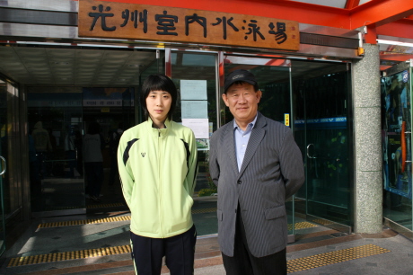 제88회 전국체전에 도대표로 참가한 정애현(수영)선수를 격려하는 김진국상임이사