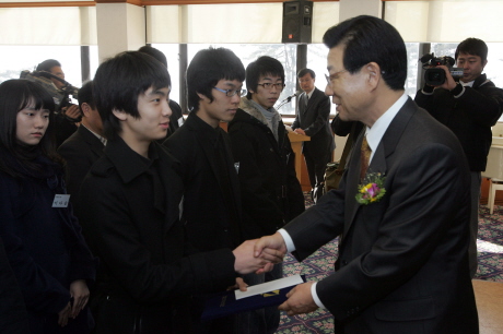 2007년도 선발 미래인재 15명이 김진선지사로부터 인증서 및 격려금 100만원을 수여받았다.