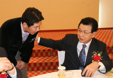 김진선 이사장(강원도지사)이 진종오선수를 격려하는 모습