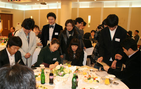 진종오, 사재혁, 윤진희 등 북경올림픽 메달 획득 미래인재들이 자연과학 등의 미래인재와 부모들의 요청에 사인을 해 주는 모습