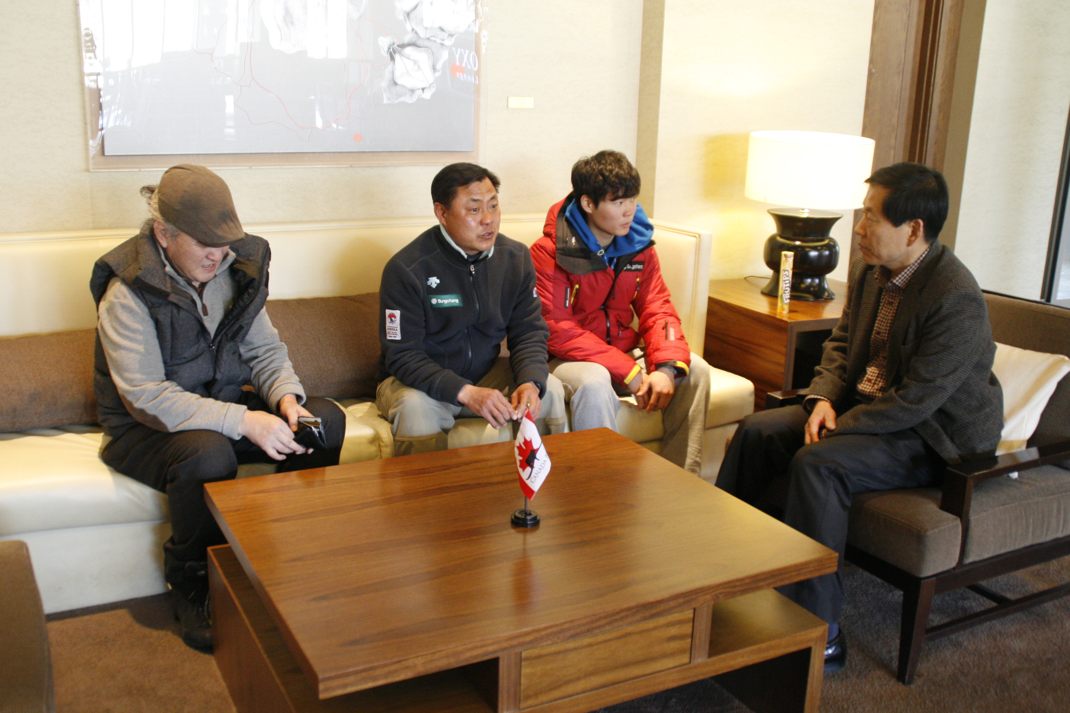 재단 함석근 상임이사님께서 소치 동계올림픽에 출전하는 스키점프의 김현기선수의 아버님과 알파인스키의 박제윤군과 아버님을 만나 선전을 당부하였다.