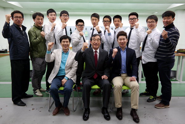 2014. 4. 8(화) 체육분야 진종오(2005년 선발)선수가 모교인 강원사대부고를 방문하여 장학금을 전달하였다