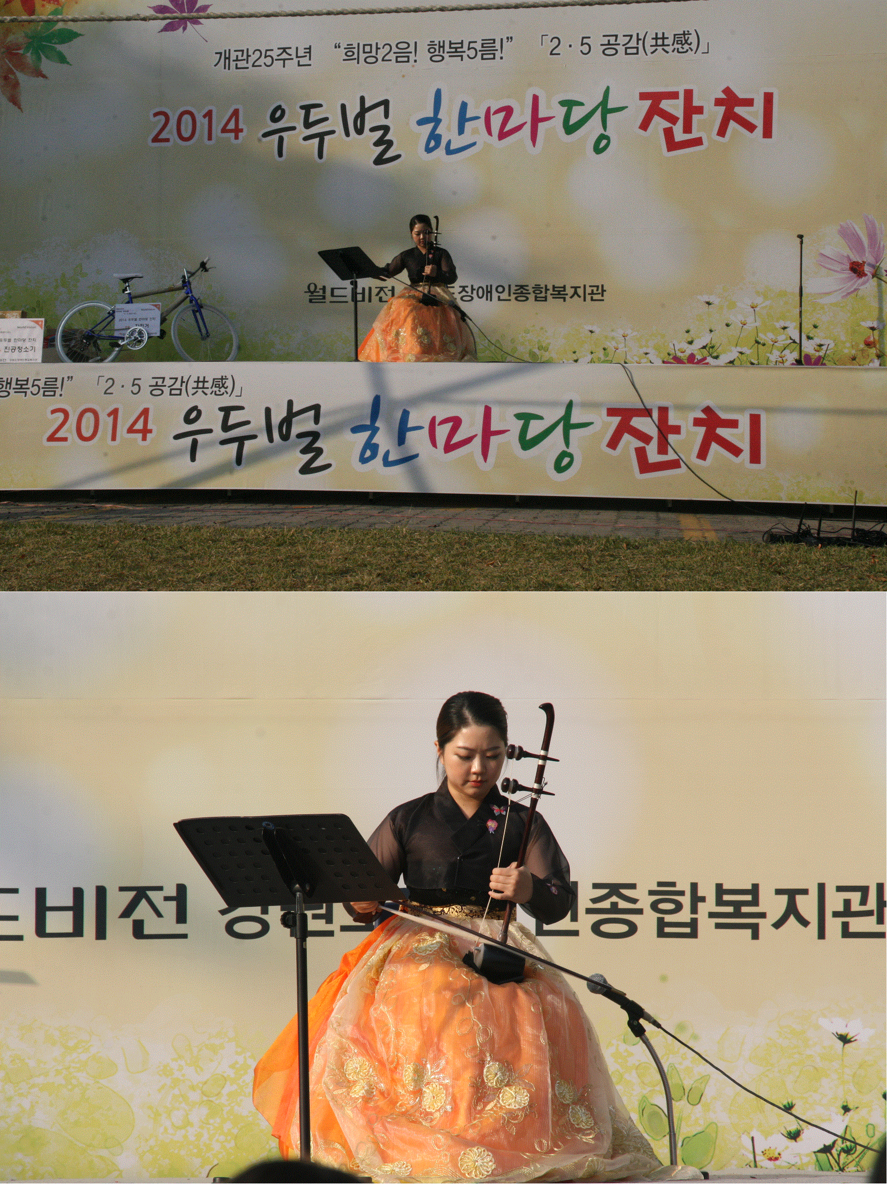 2014. 10. 18(토), 강원도 장애인종합복지관에서 개최하는 우두벌 한마당 잔치에서 정은별(2009년 선발)양이 축하공연을 하였다.