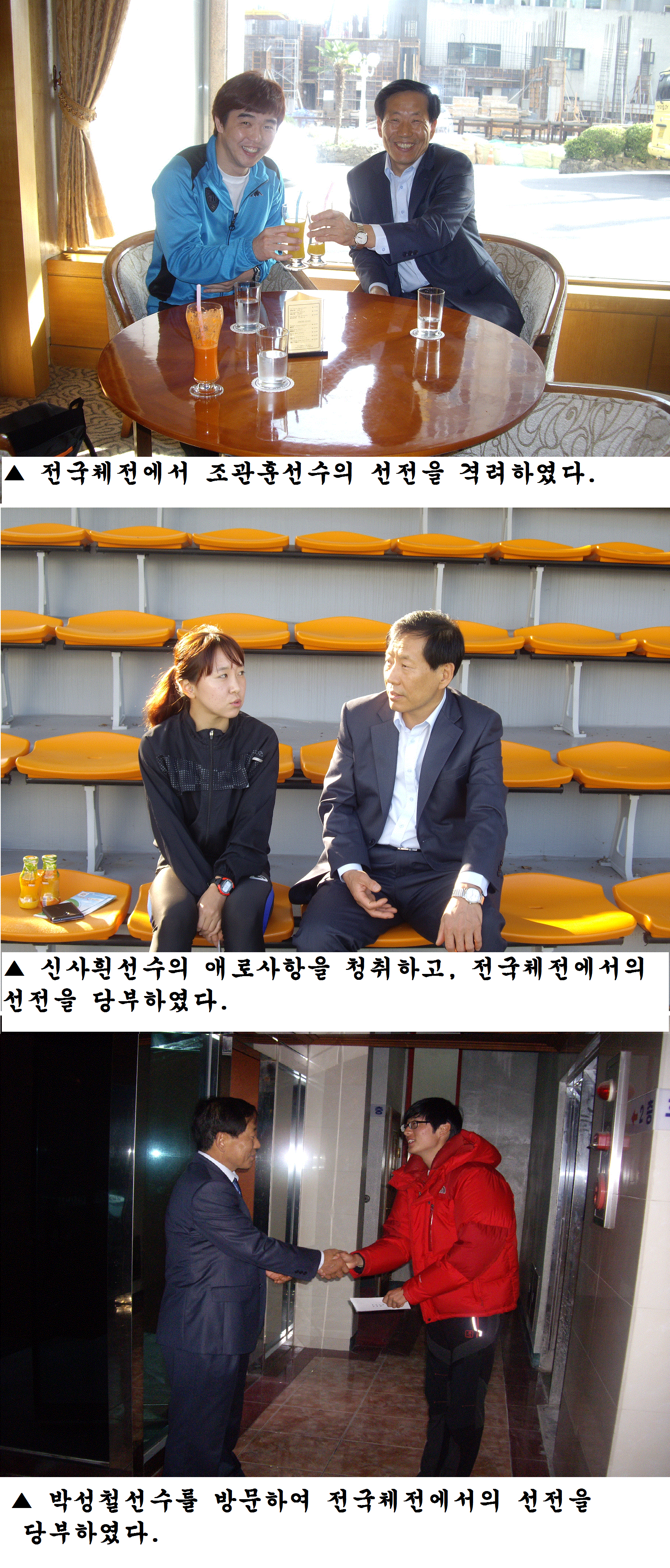 제95회 전국체전이 10.28(화)부터 7일간의 열전으로 제주에서 개최되었다. 함석근 재단 상임이사는 10. 28 ~ 10. 30까지 3일간 제주도를 방문하여 강원도의 명예를 걸고 출전하는 미래인재에게 격려금을 전달하고 선전을 당부하였다.