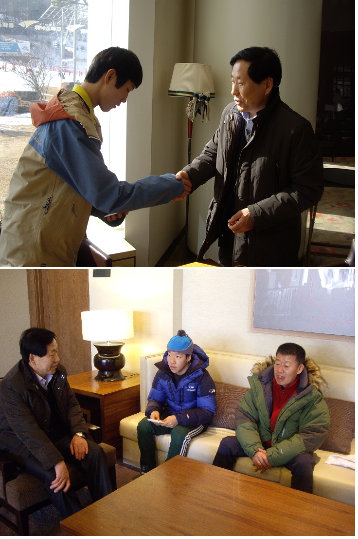 함석근 재단 상임이사는 제96회 전국동계체육대회 강원도대표로 출전하는 미래인재들의 선전을 독려하기 위해 2015. 2. 24(화) 훈련장을 방문하여 격려금 30만원을 전달하고 격려하였다.