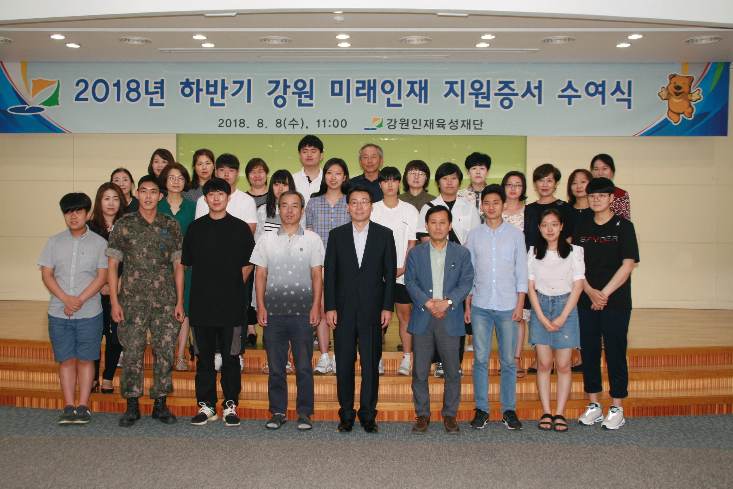 ▶ 2018년 하반기 미래인재 지원증서 수여식이 8월 8일 오전 11시 강원도청 별관 회의실에서 개최되었습니다.