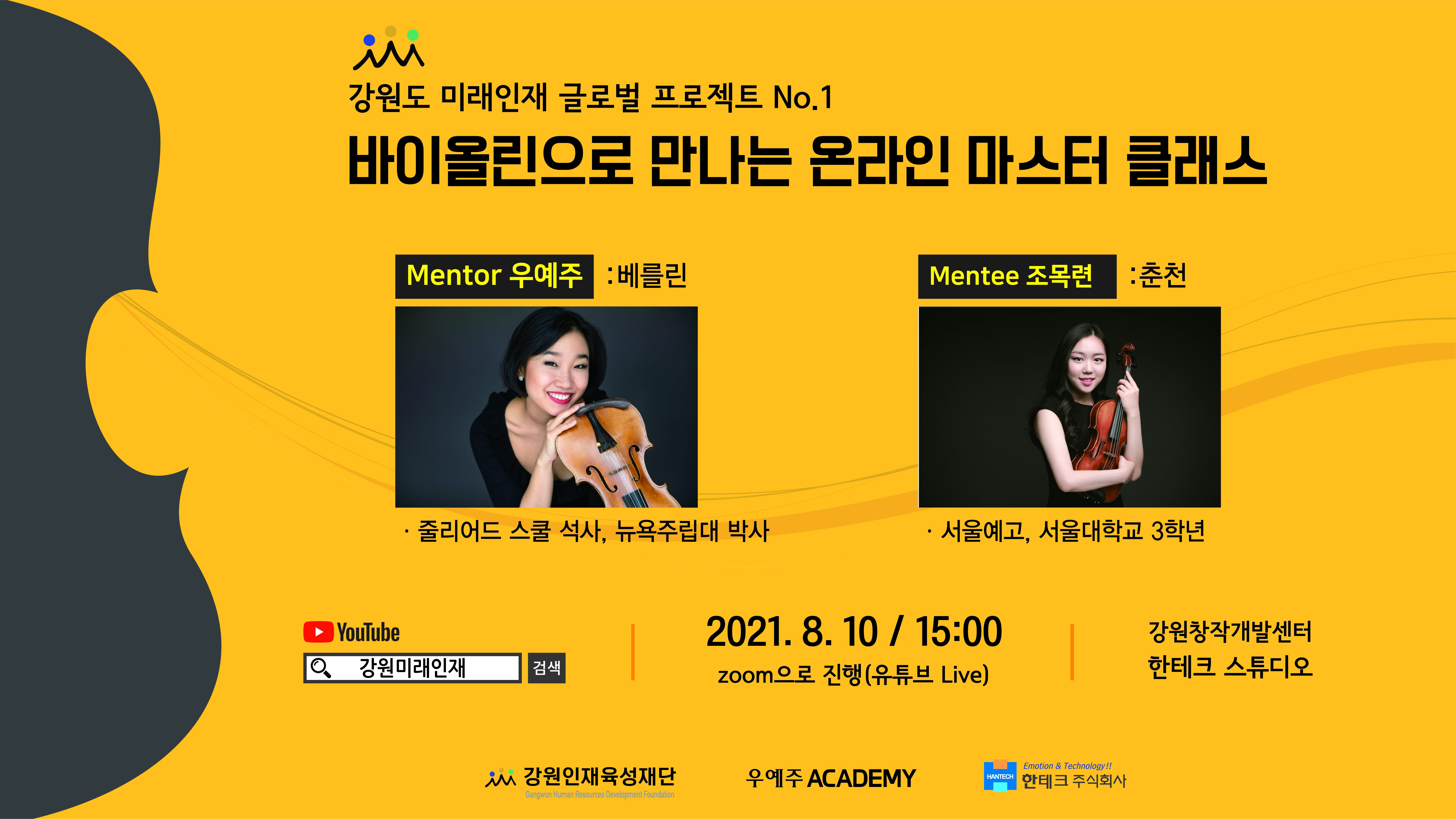 미래인재 선후배의 만남 NO.1 '바이올린 온라인 마스터 클래스'2021. 8. 10(화) 15:00