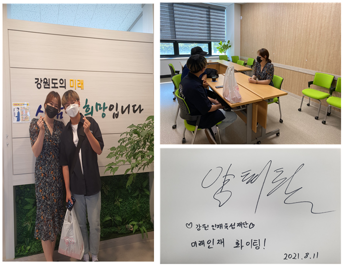 2021.8.11(수) 16시 재단 사무실미래인재 양태환(일렉기타) '골든핑거 페스티벌 공연' 격려