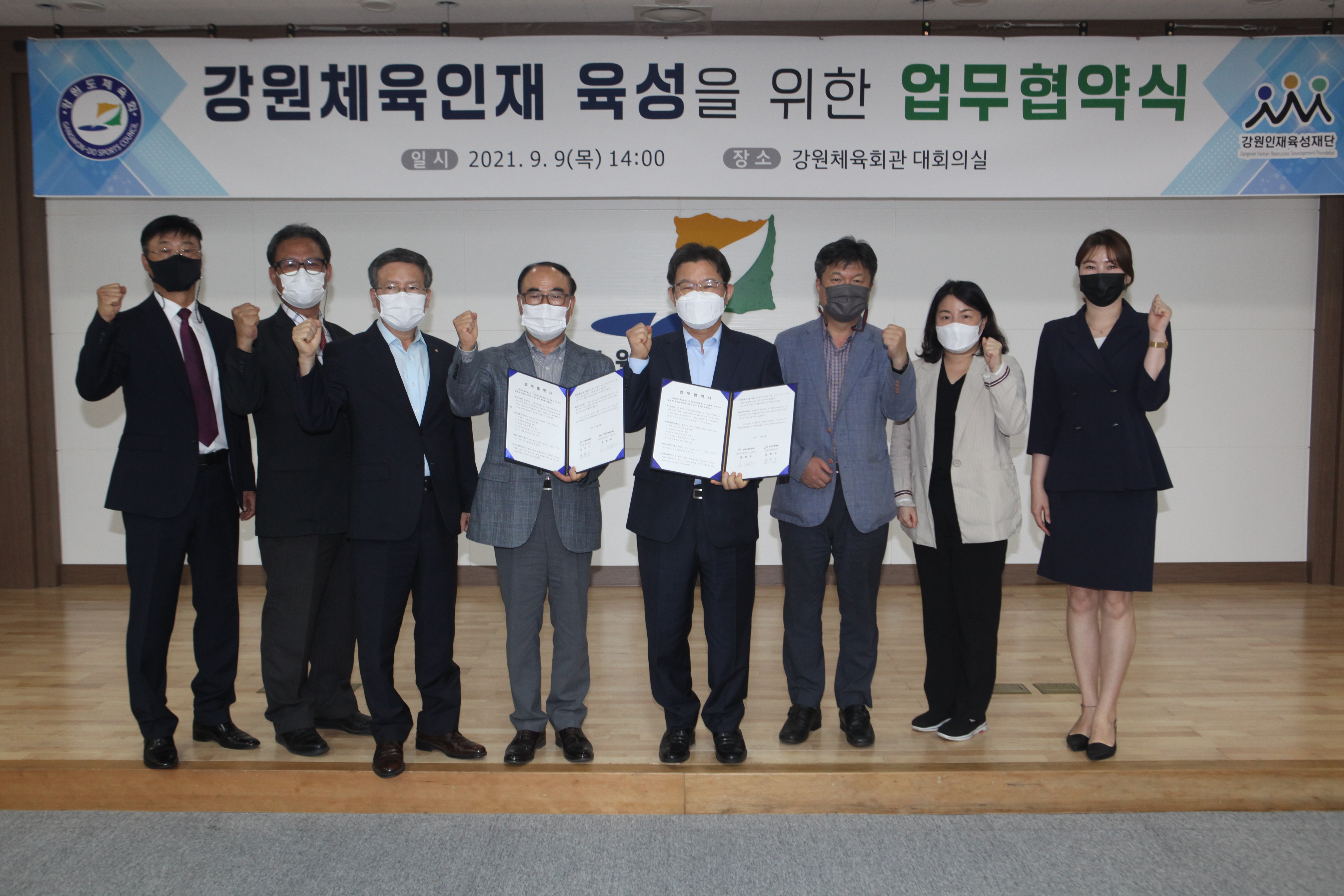 2021. 9. 9(목), 14:00, 강원체육회관 대회의실체육 인재 육성을 위한 강원도체육회 업무협약 체결