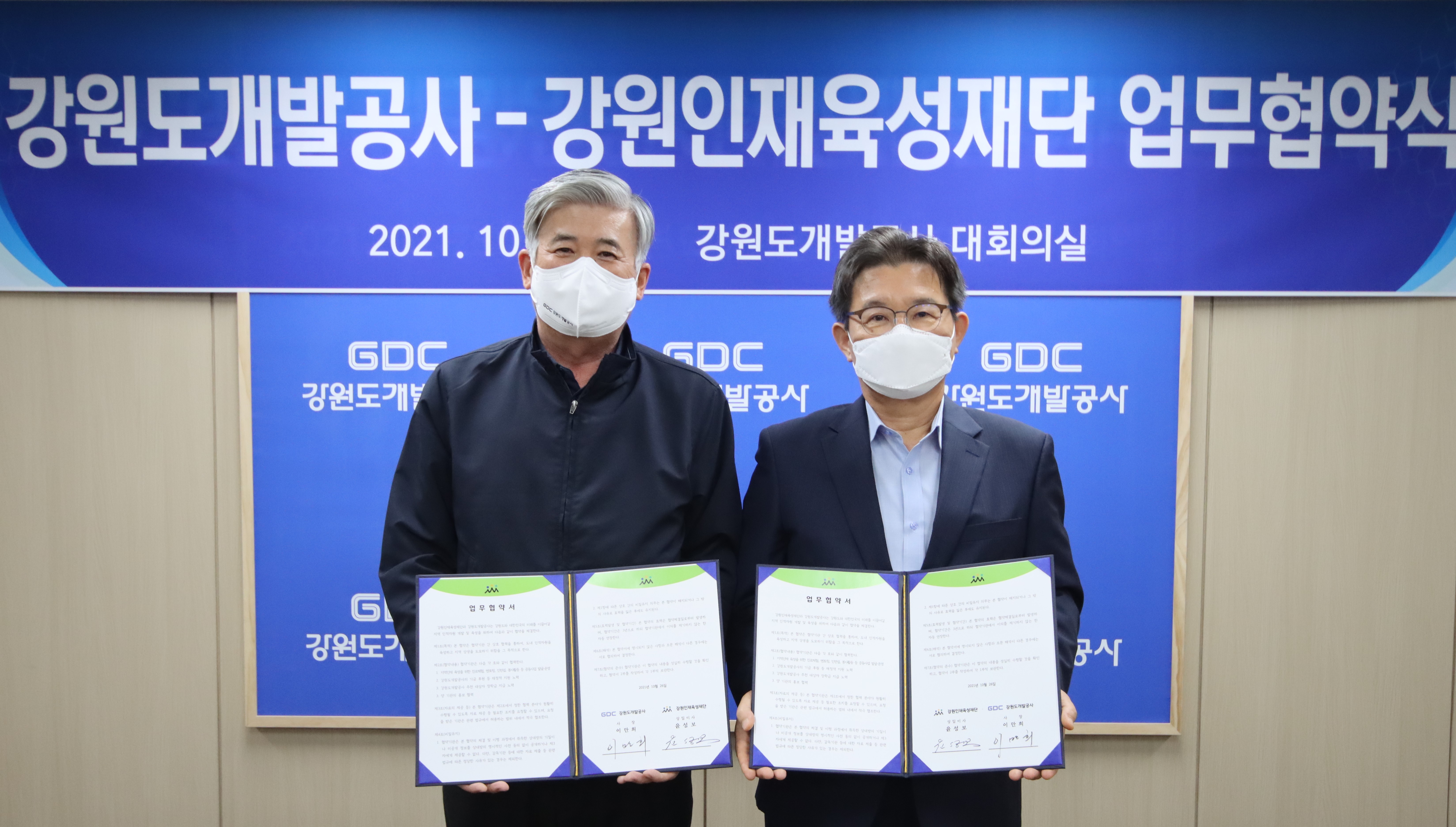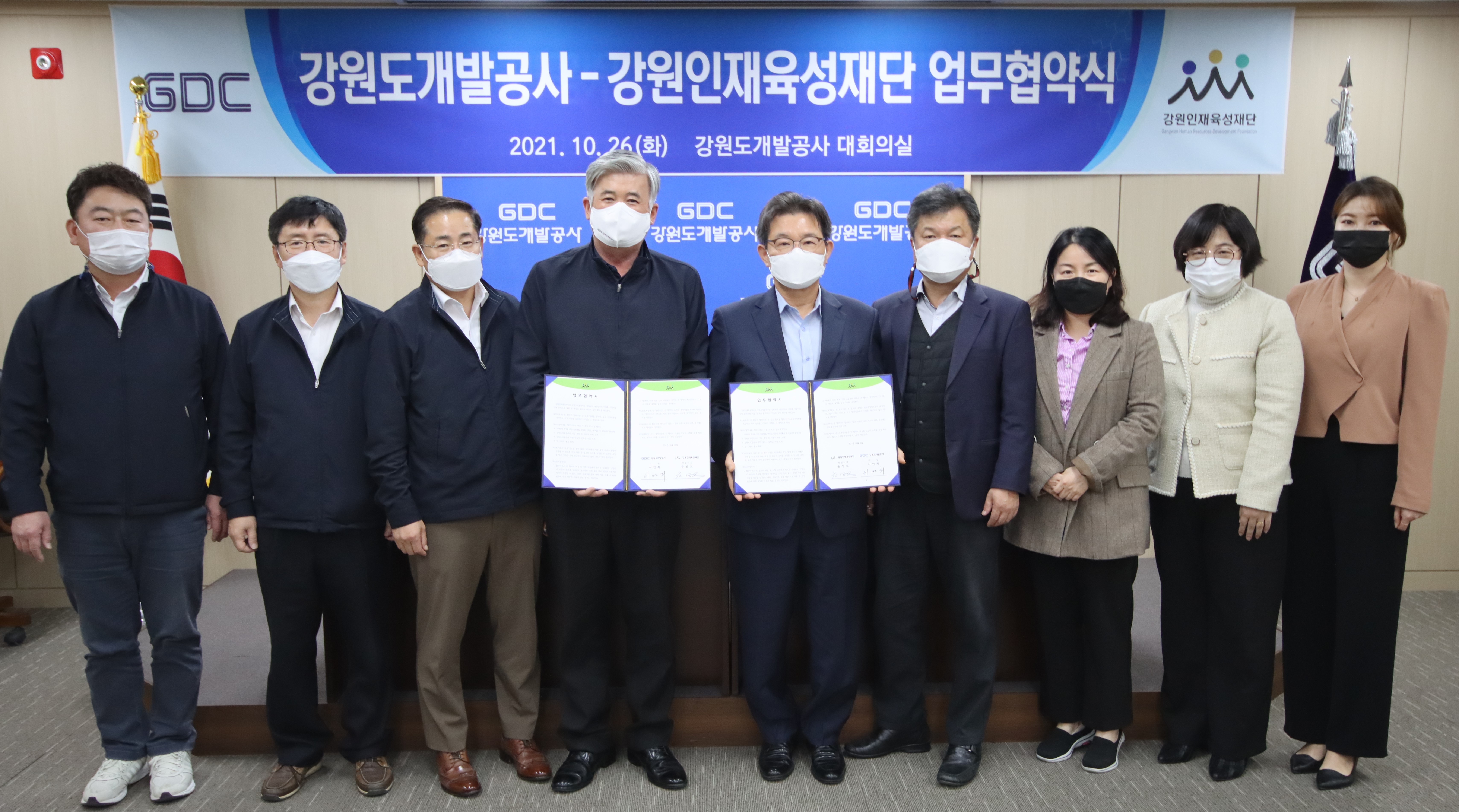 2021. 10. 26(화) 14:00 강원도개발공사 대회의실 도내 인적자원 개발과 지역상생을 위한 업무협약식 개최