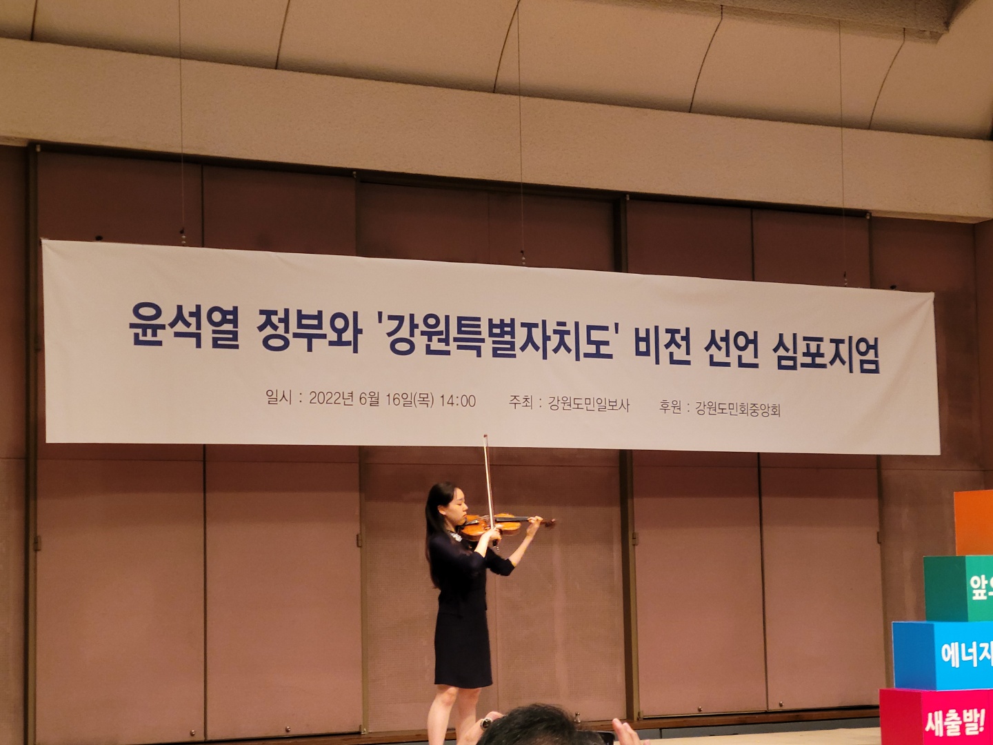 내용: 강원특별자치도 비전 선언 심포지엄 강원도 학생 대표 미래인재 3인 참석 및 축하공연