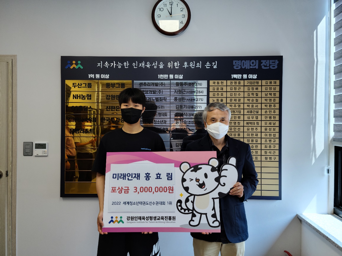 미래인재 홍효림(2022년 선발_체육분야_태권도) 국제대회 입상 포상금 지급