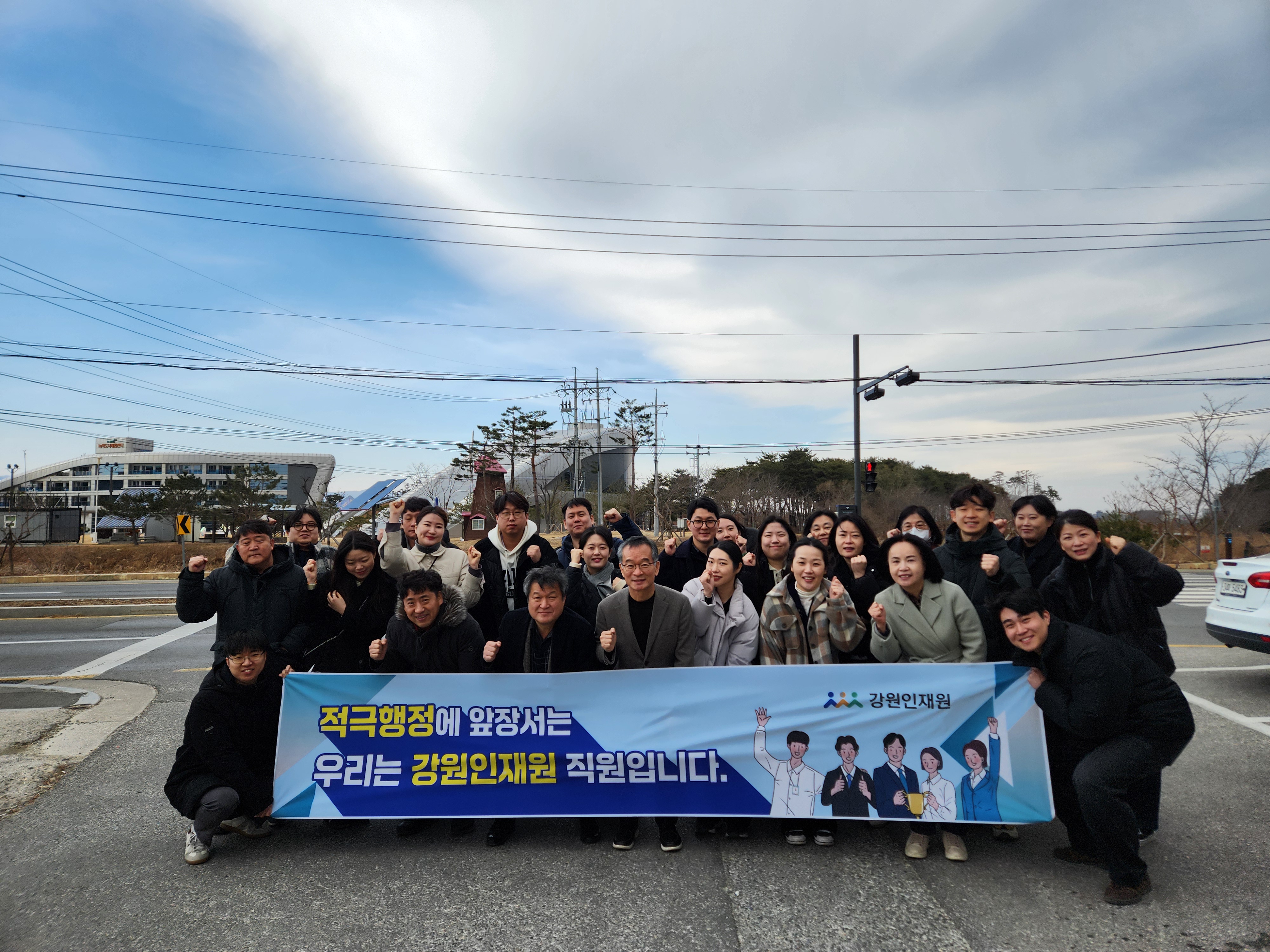 강원인재원은 지난 2월 25일 규제,관행에 얽매이지 않고, 자율과 책임으로 일하는 환경을 조성하고자 적극행정 추진체계를 구축하고 임직원이 함께 실천 다짐 선포식을 개최했다
