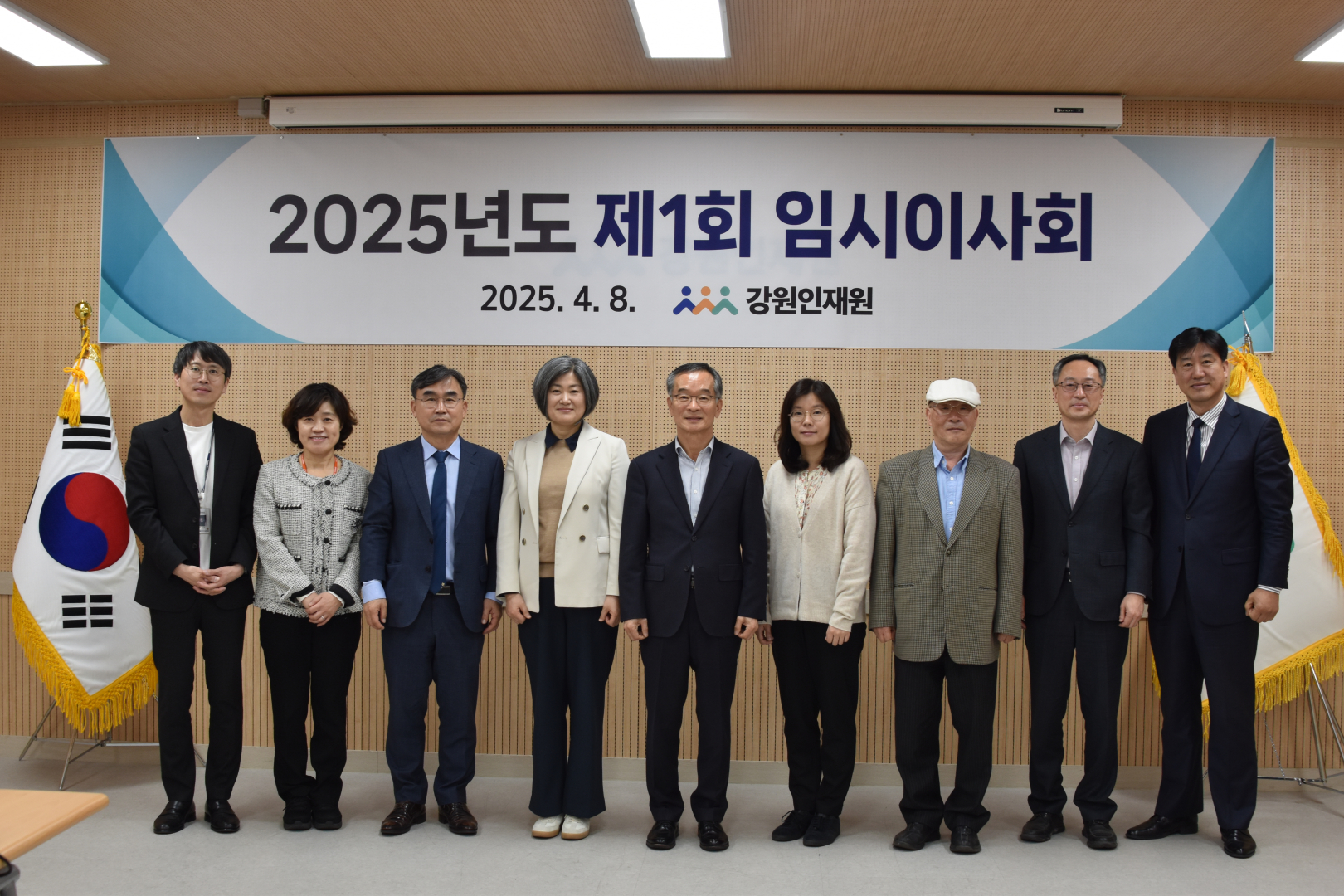 2025년 4월 8일, 강원인재원은 2025년도 제1회 임시이사회를 개최하여 규정개정안 5건과 기부금사용계획, 추가경정예산안을 심의하였다.