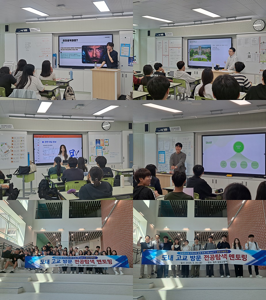 □ 강원학사 재사생 8명이 멘토로 참여한 이번 멘토링은 섬강고 1학년 학생 260명을 대상으로 전자공학과, 인공지능학과, 국제학부 등 다양한 전공소개 및 진로 전망,