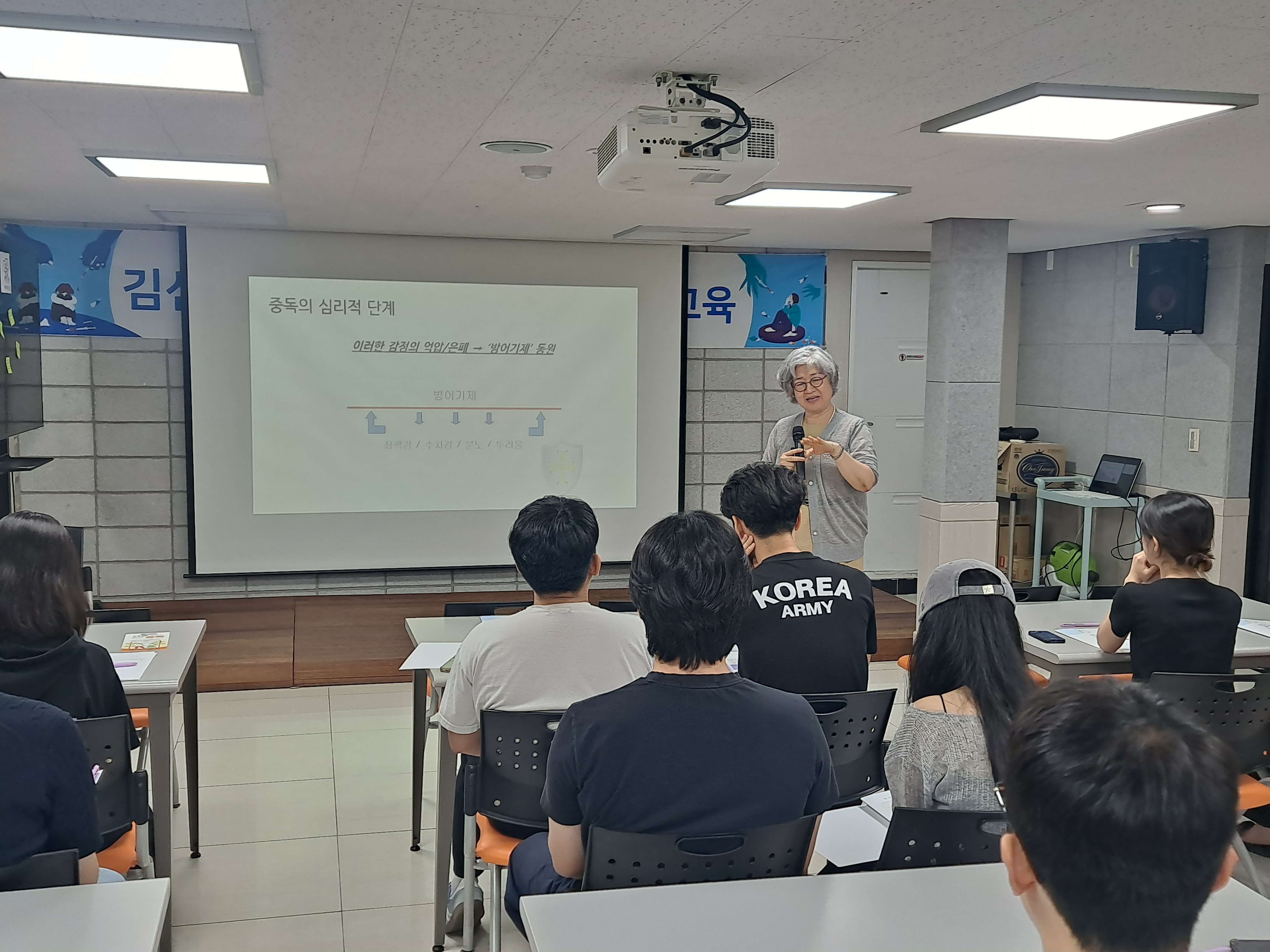 □ 도봉 중독관리 통합지원센터와 협력하여 진행한 이번 교육은 한국회복코치상담소 소장이자 이화여대 초빙 교수로 활동 중인 김선민 소장의 참여로 진행됐다.