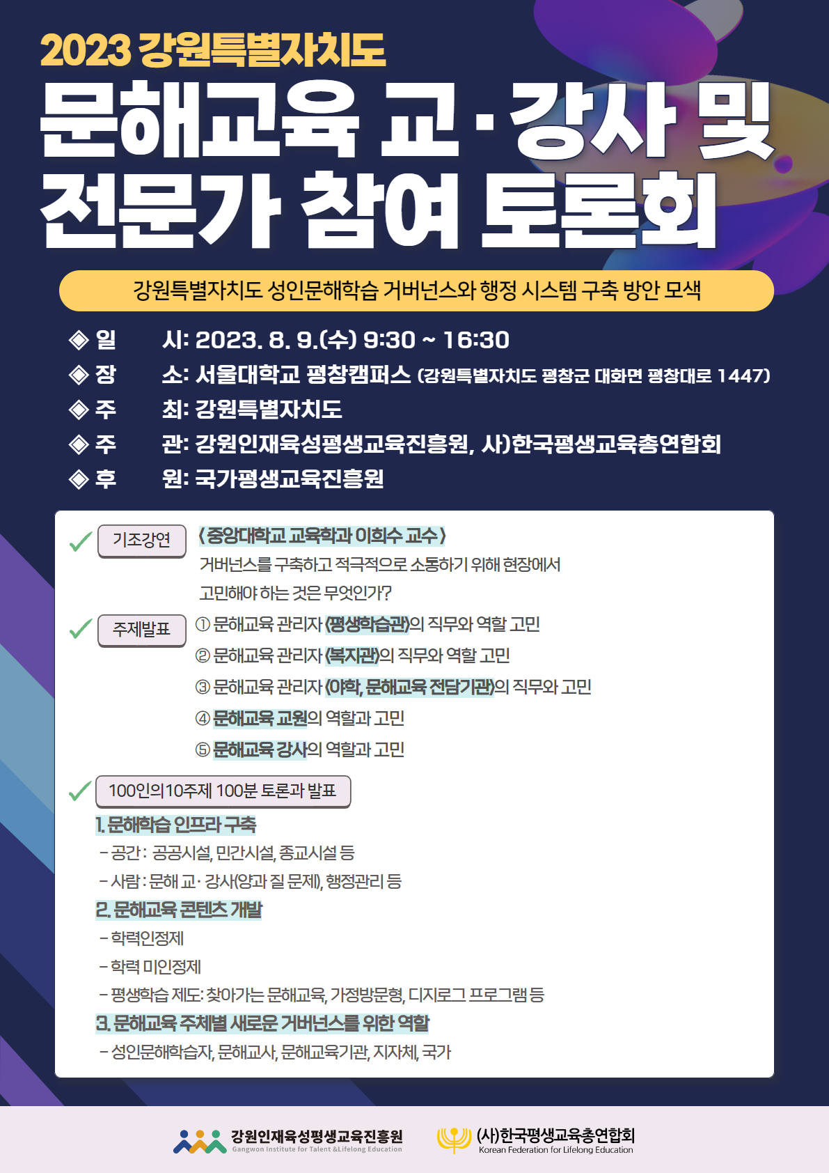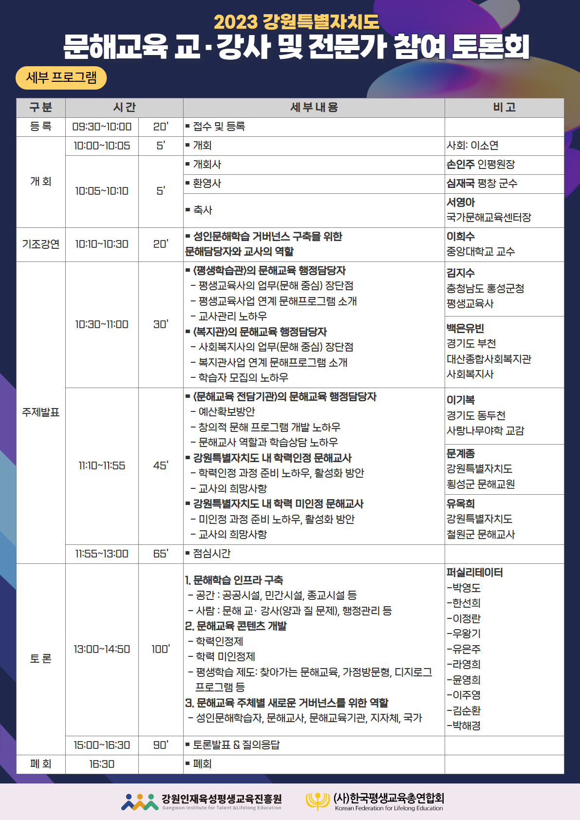 2023 강원특별자치도 문해교육 교·강사 및 전문가 참여 토론회 개최 안내