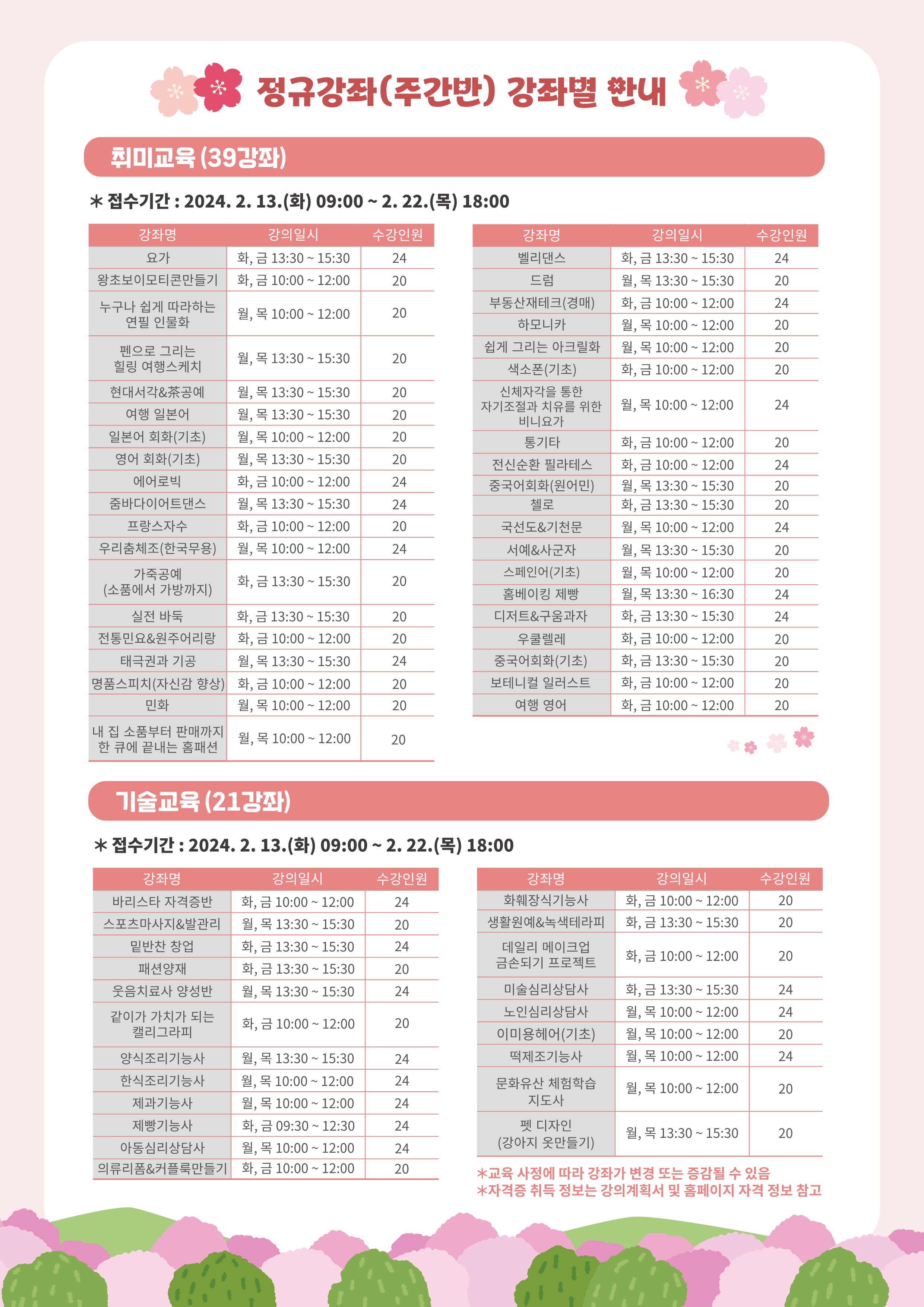 ○ 사 업 명 : 2024년 상반기 학습관 본관 정규강좌(주간반) 수강생 모집
