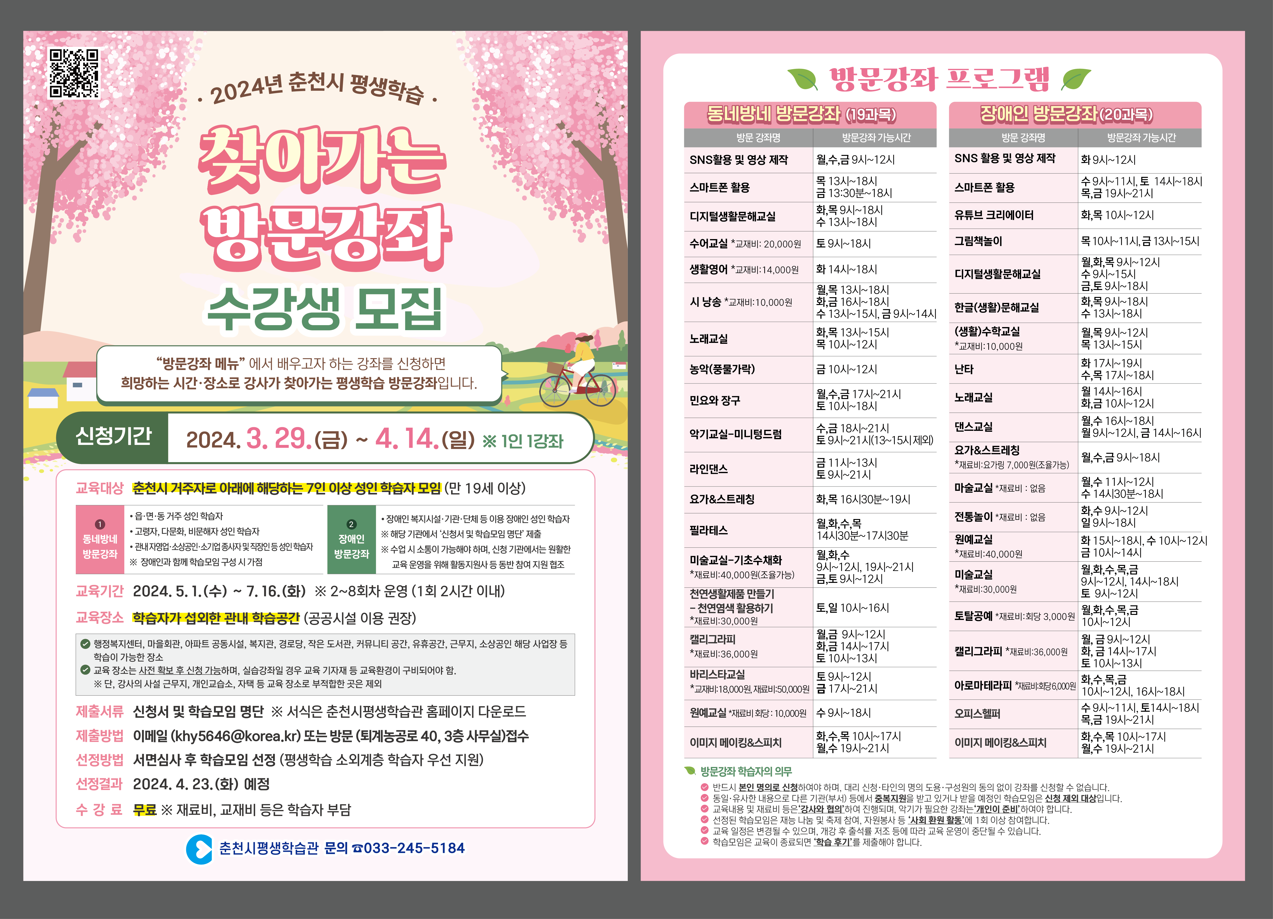 ○ 문 의 처: 춘천시평생학습관 ☏ 033-245-5184