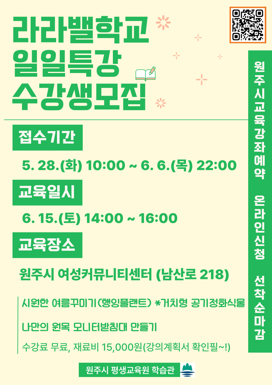 [원주시] 2024년 라라밸학교 일일특강(6월) 수강생모집