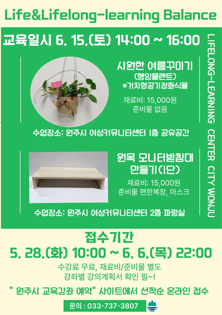 ※ 문의: 원주시 평생교육원 학습관 평생교육팀(☎ 033-737-3807)