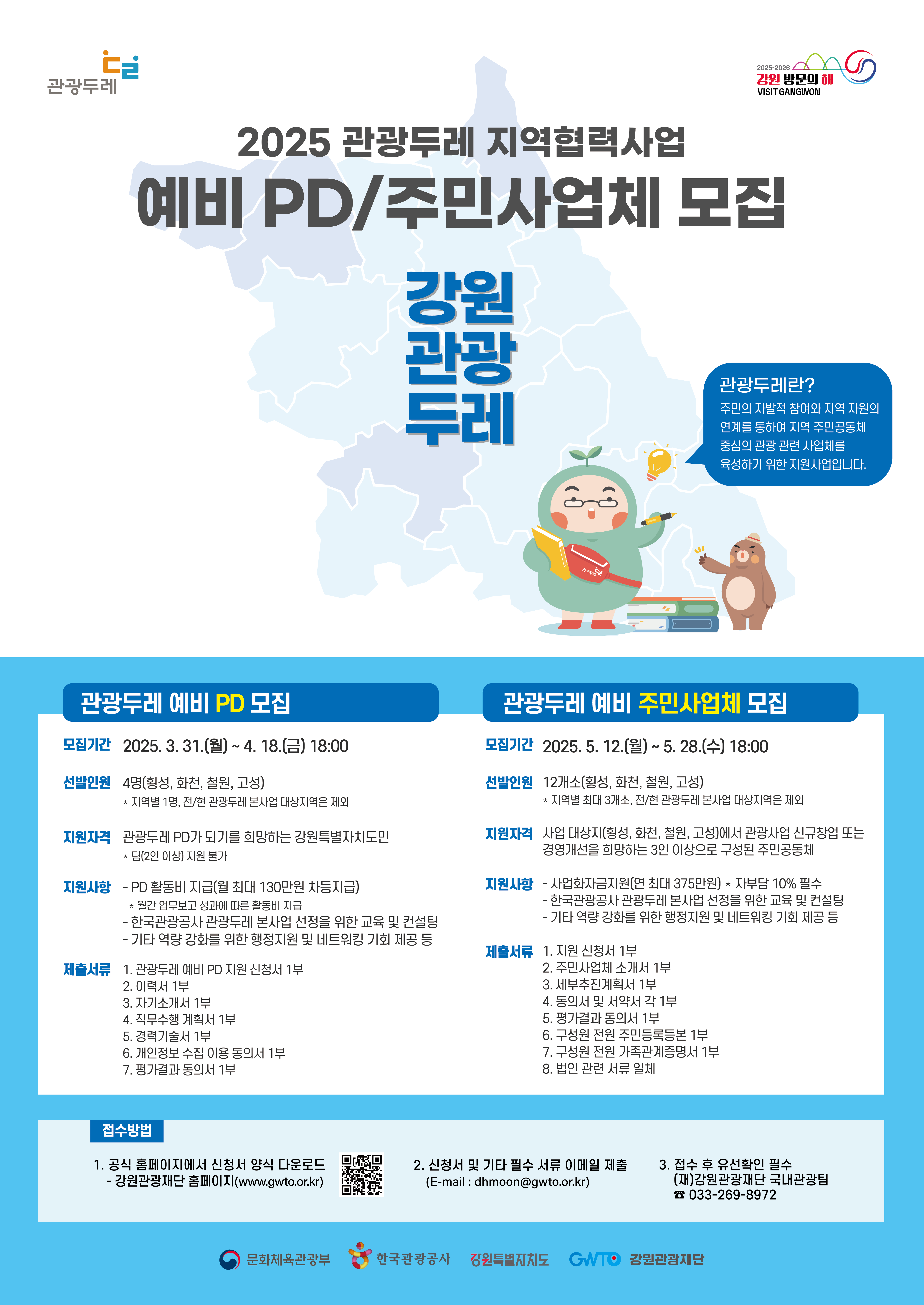 | [강원관광재단] 강원 관광두레 예비 PD 모집 공고 | 경영지원팀 | 2025-03-31 | 89 | ||