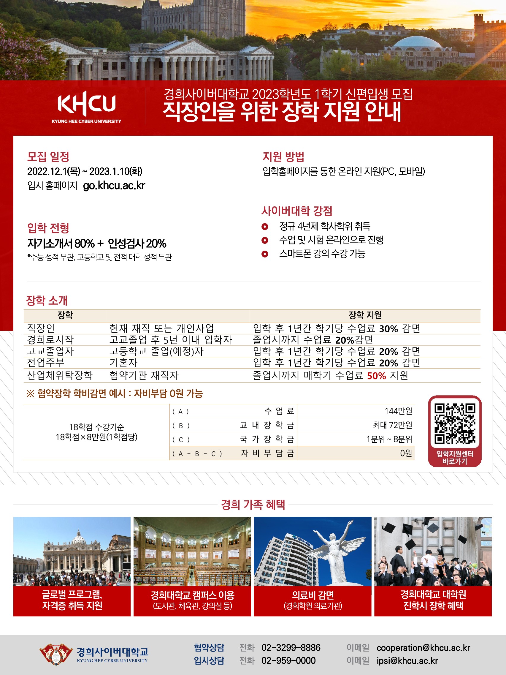 | [경희사이버대학교] 2023년도 1학기 신편입생 모집 안내 | 경영지원팀 | 2022-12-12 | 161 | ||