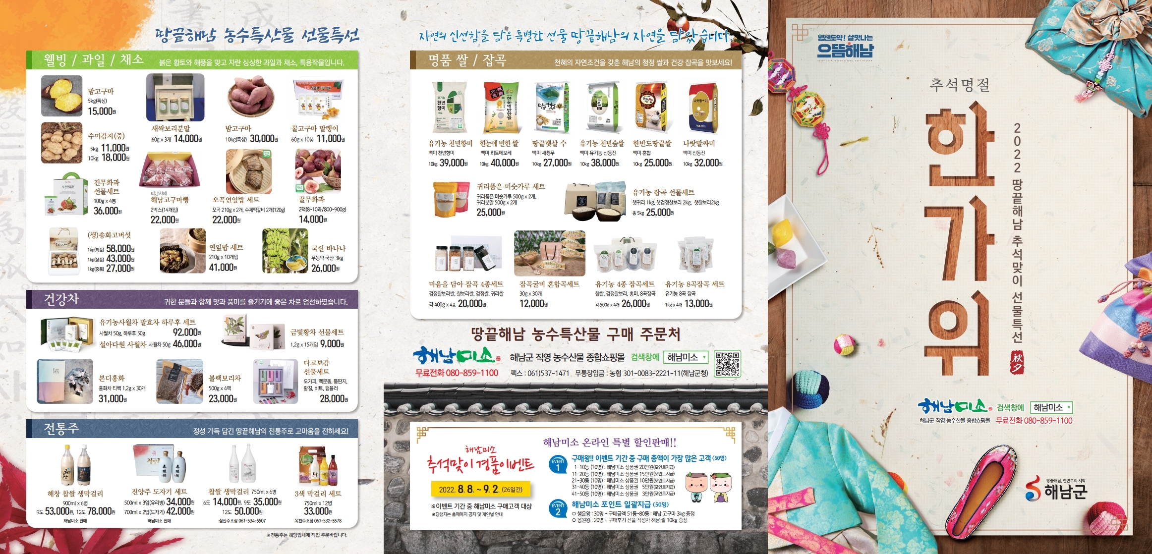 | [전라남도 해남군] 추석 명절맞이 농수특산물 특별할인 및 고객감사 이벤트 | 경영지원팀 | 2022-08-22 | 191 | ||